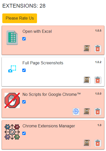- After installing the extension. You click on the icon and can manage all the extensions you have installed before. Easily enable/disable any extension you want.